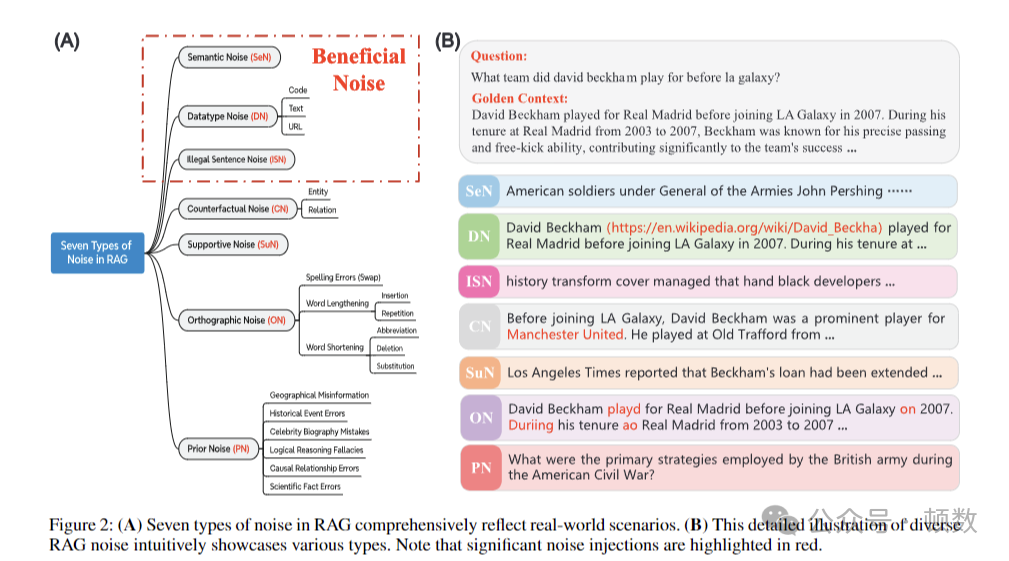 不同的训练技术旨在提高 RAG 模型对抗检索噪声的鲁棒性,并使用 RobustRAG 等框架增强对腐败攻击的防御。然而,先前的研究往往忽视了噪声的系统评估,忽视了其潜在的积极影响。显然,需要对检索噪声进行详细探索,包括对噪声类型进行清晰的分类。本文通过定义七种类型的噪声、将它们分为有益组和有害组,并提供对LLMs中 RAG 噪声的细致入微的理解,解决了这些差距。