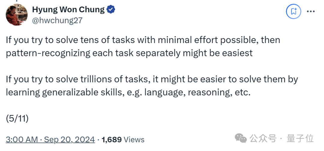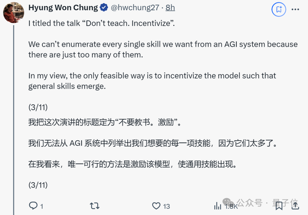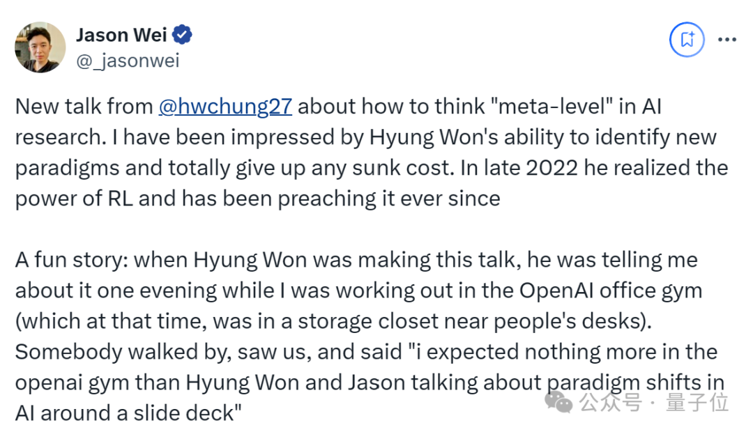 其中关键,OpenAI研究科学家、o1核心贡献者Hyung Won Chung,刚刚就此分享了他在MIT的一次演讲。