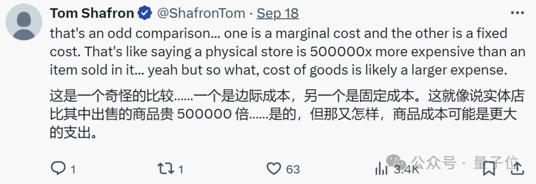 这是一个奇怪的比较。一个是边际成本,另一个是固定成本。这就像说实体店比其中出售的商品贵500000倍
