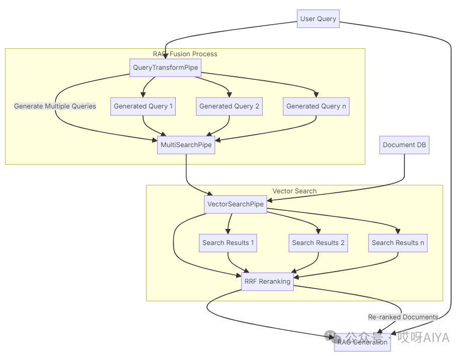 下面是说明 RAG-Fusion 工作流程的图表: