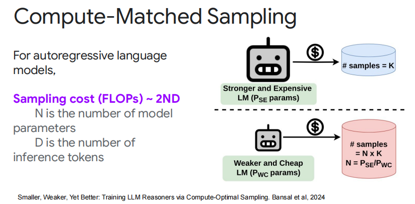 通过计算匹配采样,可以在给定计算资源的情况下,让小模型生成更多样本,从而提高大模型的性能。