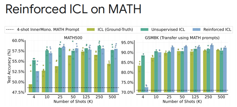 最后探讨了是否可以通过上下文学习来替代微调过程,提出了强化上下文学习 (Reinforced ICL) 的概念。
