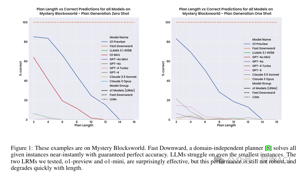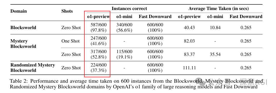 - 然而,在Mystery Blocksworld问题上,o1的表现虽然超过所有先前的模型,但准确率也只有52.8%。