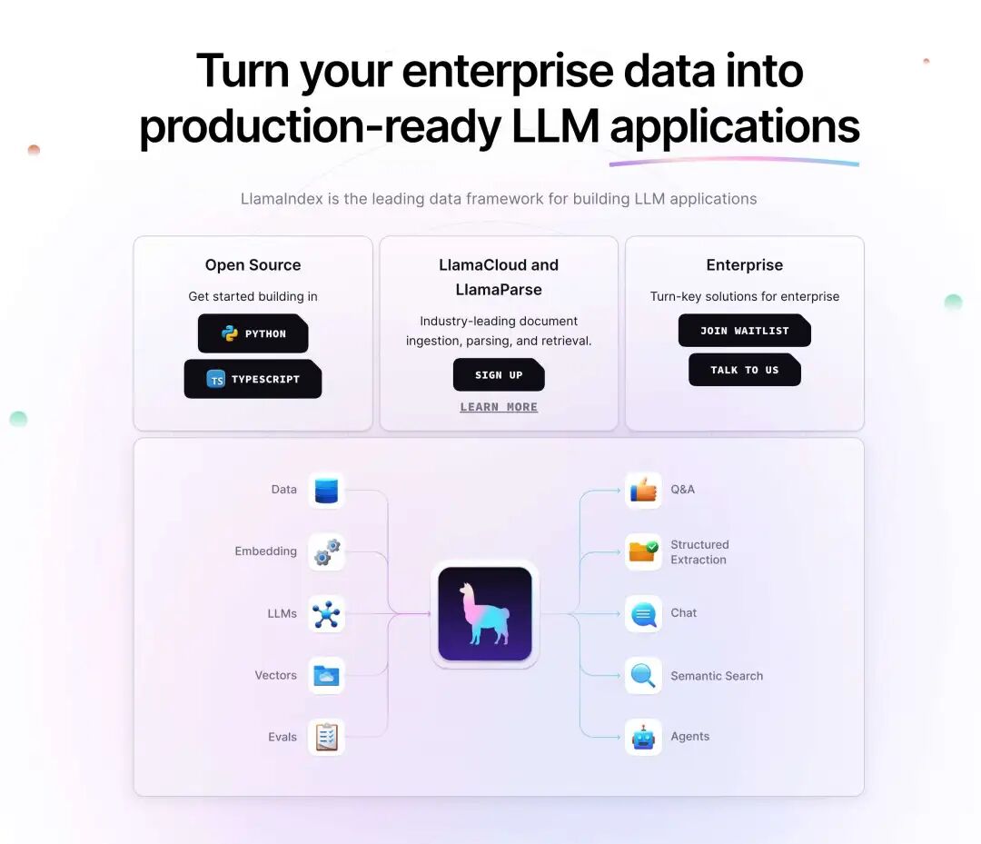 LlamaParse 简介LlamaParse[1] 是一个专为生成式人工智能(GenAI)设计的文档解析器,能够解析复杂的文档数据,以适应任何下游大型语言模型(LLM)的使用场景,如检索增强生成(RAG)或智能代理。 它能够解析多种复杂的文件类型,包括 PDF、PPTX、DOCX、XLSX 和 HTML,并且支持表格识别、多模态解析和自定义解析。  项目特点主要特点- 广泛的文件类型支持:支持解析多种非结构化文件类型,包括 PDF、PPTX、DOCX、XLSX、HTML 等,涵盖文本、表格、视觉元素、复杂布局等。