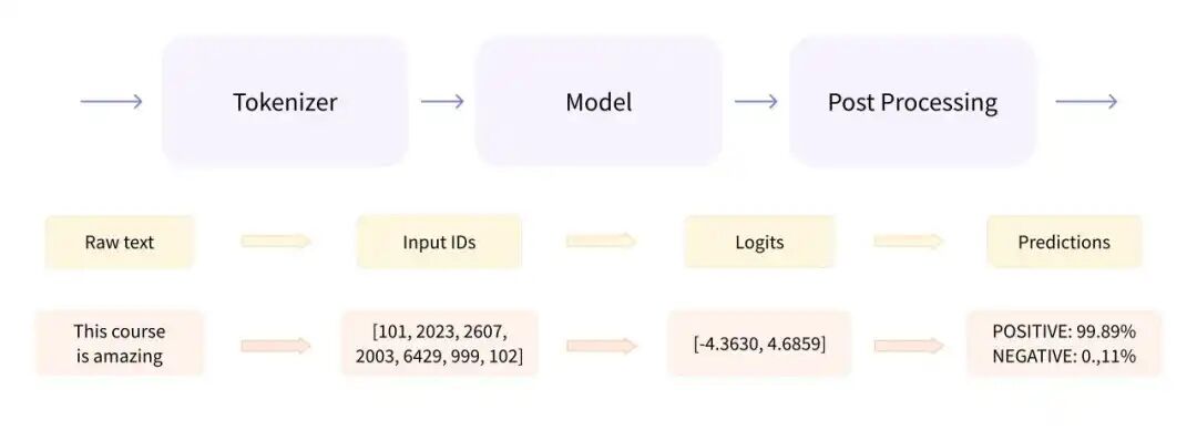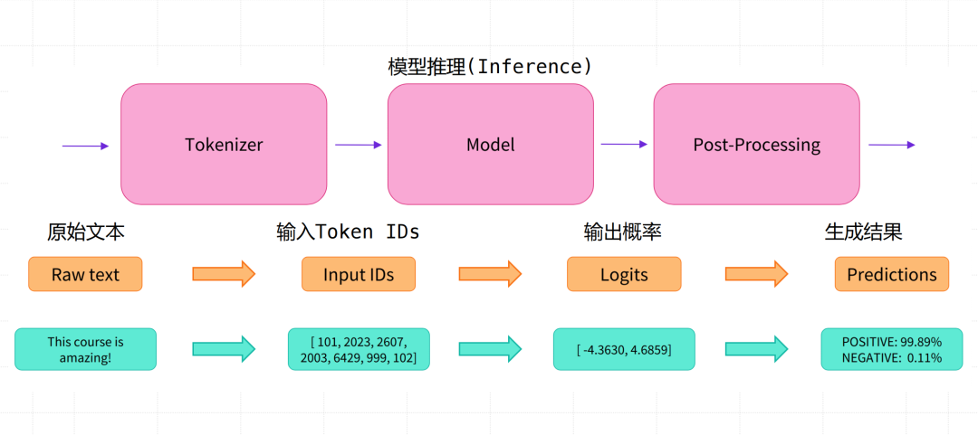 • Pipelines:这是Hugging Face Transformers提供的一个高层API,旨在简化模型的使用过程。通过Pipelines,用户可以轻松地执行各种任务,如文本分类、问答和文本生成等。这个简化的接口使得快速实践大模型变得更加容易,用户只需几行代码就能完成复杂的任务。