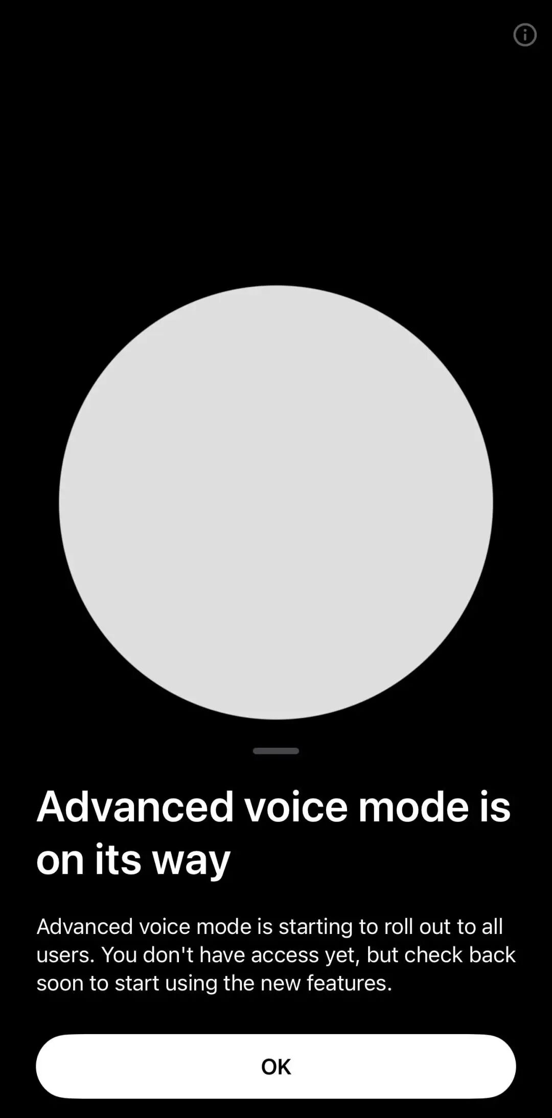 Advanced voice mode is starting to roll out to all users. You don't have access yet, but check back soon to start using the new features.
