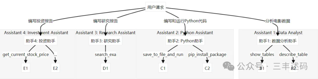 然后针对可以委托的助手,prompt增加了具体的描述,方便LLM去调度,每个助手内部也有各种tools,LLM可以选择合适的