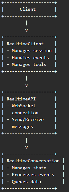 RealtimeAPI Class、RealtimeConversation Class、RealtimeClient Class,调用逻辑示意图如下: