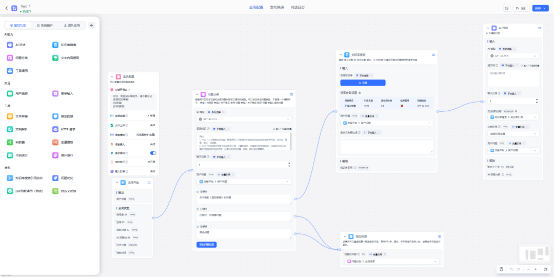 3. 配置灵活:系统内建强大的工作流引擎,能够自定义AI工作流程,以适应复杂的业务需求。
