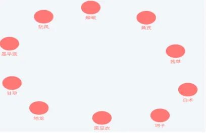 本文利用构建的知识图谱,分析挖掘国医大师治疗鼻炎的用药规律,如治疗狂嚏症状用药频率的前10位。MATCH (v:患者)-[:患者症状]->()-[:具体症状]->(v1) where id(v1)==‘狂嚏’MATCH (v:患者)-[:治疗方剂]-(v3)-[e2:配伍]->(v4) RETURN v4,count(v4) as cnt ORDER BY cnt DESC limit 10;上述语句查询具有狂涕症状的患者,再获取患者的治疗方剂,根据配伍中的用药频次进行排序,获取前10味药。结果如图所示,用药前10味分别为蝉蜕、防风、墨旱莲、甘草、地龙、黑豆衣、诃子、白术、茜草、黄芪。