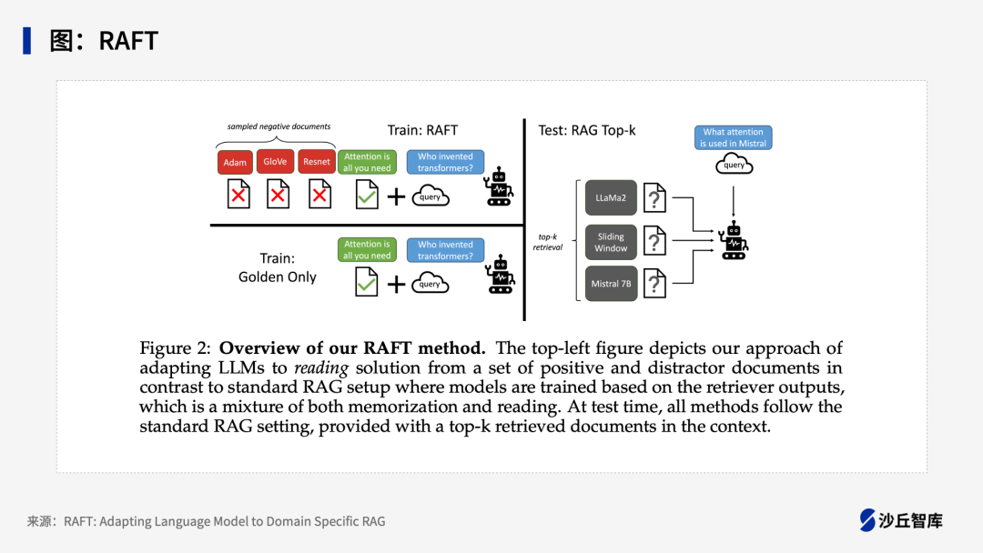 RAFT团队提出了检索增强微调法(RAFT),这是一种训练方法,可提高模型在“开卷”领域设置中回答问题的能力。在RAFT中,给定一个问题和一组检索到的文档,团队训练模型忽略调那些干扰文档。RAFT通过逐字引用相关文档中有助于回答问题的正确序列来实现这一点。这与RAFT的思维链式响应相结合,有助于提高模型的推理能力。在特定领域的RAG中,RAFT持续提高了模型在PubMed、HotpotQA和Gorilla数据集上的性能,为改进预训练LLM的域内RAG提供了一种后训练方法。