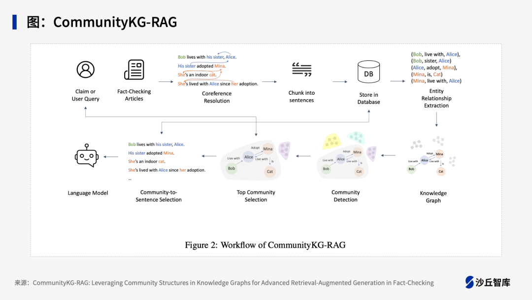 CommunityKG-RAG(社区知识图谱-检索增强生成)是一种新颖的框架,将知识图谱(KG)中的社区结构与RAG系统集成在一起,以增强事实检查过程。CommunityKG-RAG无需额外训练即可适应新领域和新查询,它利用知识图谱中社区结构的多跳特性,显著提高了信息检索的准确性和相关性。其团队实验结果表明,CommunityKG-RAG的性能优于传统方法,提供了一种稳健、可扩展和高效的解决方案,代表了事实检查领域的重大进步。