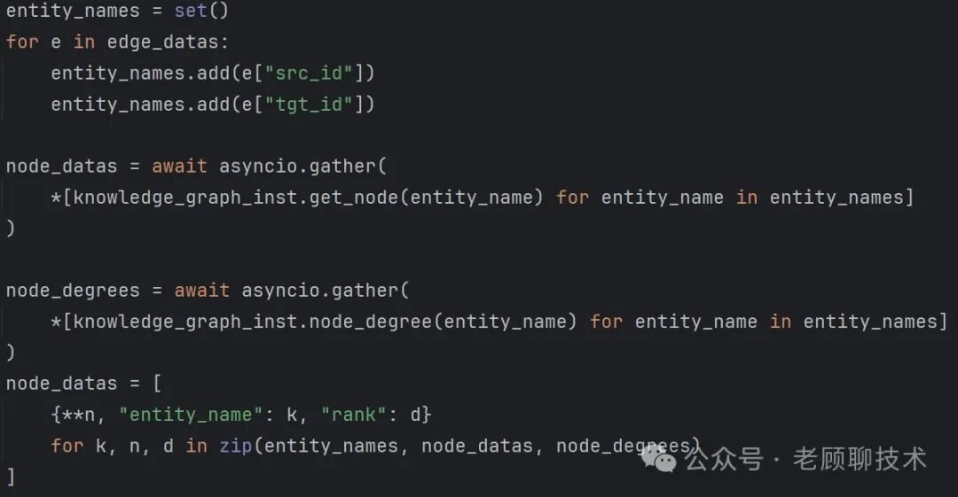 #对low关键字进行实体点向量的查询results=awaitentities_vdb.query(low_keywords,top_k=query_param.top_k)对检索出来的实体名,进行图库的查询#找出图库中的相关查询的实体点node_datas=awaitasyncio.gather(*[knowledge_graph_inst.get_node(r["entity_name"])forrinresults])