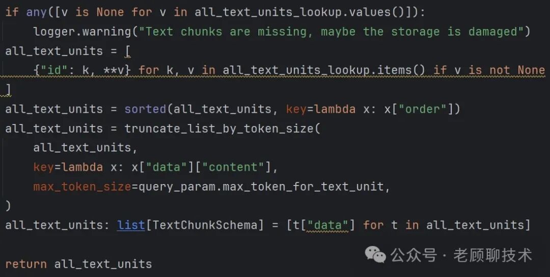步骤四(获得最相关的文档片段) 下面就是找到相关的文档片段,_find_related_text_unit_from_relationships,并排序,在token压缩