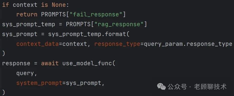 #把查询出来的分段内容,赋值到提示词中sys_prompt = sys_prompt_temp.format(content_data=section, response_type=query_param.response_type)