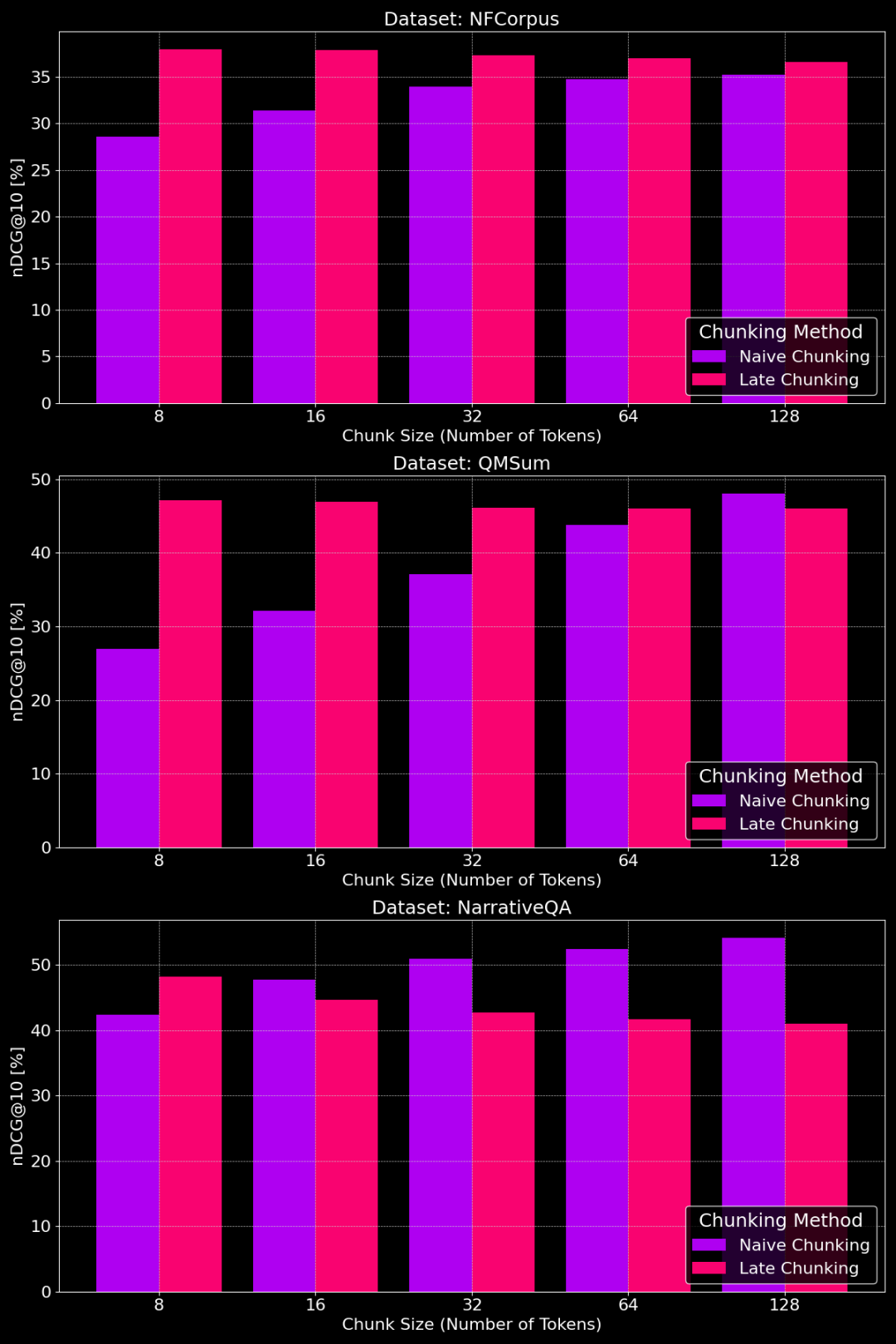• 详细实验结果见:https://jina.ai/news/still-need-chunking-when-long-context-models-can-do-it-all