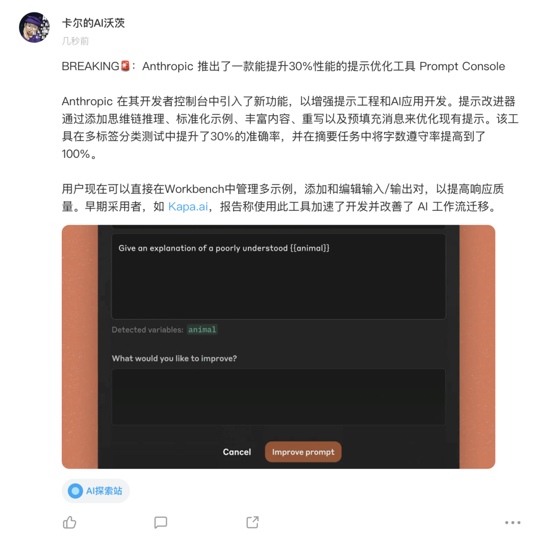 输入是Claude这次更新的网页:https://www.anthropic.com/news/prompt-improver