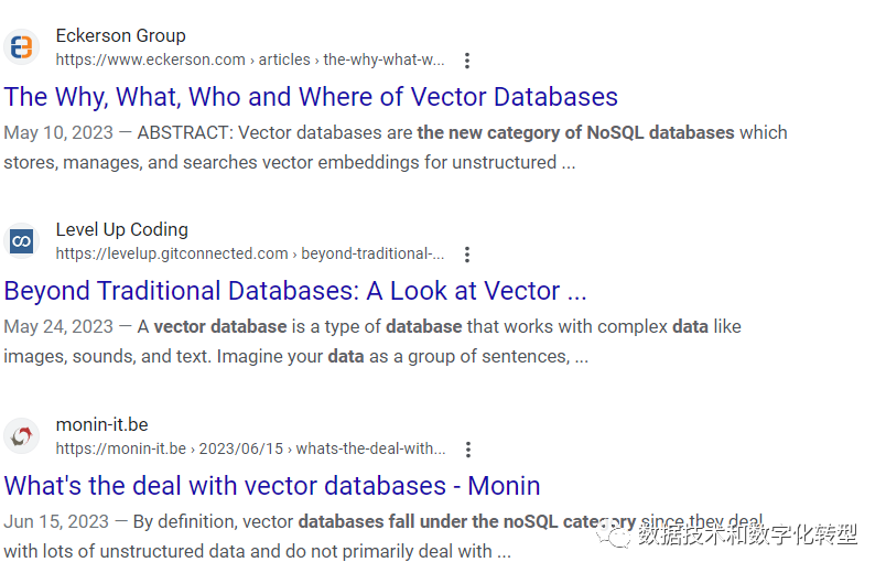 英文网站中则明确定义向量数据库是一种NoSQL数据库。