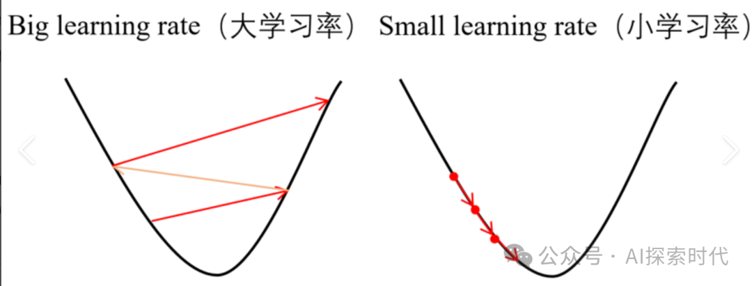 • 控制参数更新的步长,过大可能导致训练不稳定,过小会使训练收敛速度变慢。