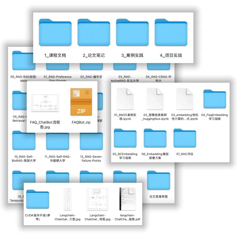 课程配套资料 为了帮助你在学习过程中更加深入地掌握课程内容,我精心准备了一系列配套资料。这些资料包括:课程相关笔记文档,案例实践的相关代码,实战项目的代码,5篇精讲论文的思维导图(jpg和PDF) 以及19篇与RAG相关的前沿论文精读文档。 这些资料将成为你学习过程中不可或缺的工具,帮助你更好地理解并应用课程中的核心技术与理念。你可以在课程页面内自助下载所有配套资料,课程更新后资料会同步更新,敬请关注。