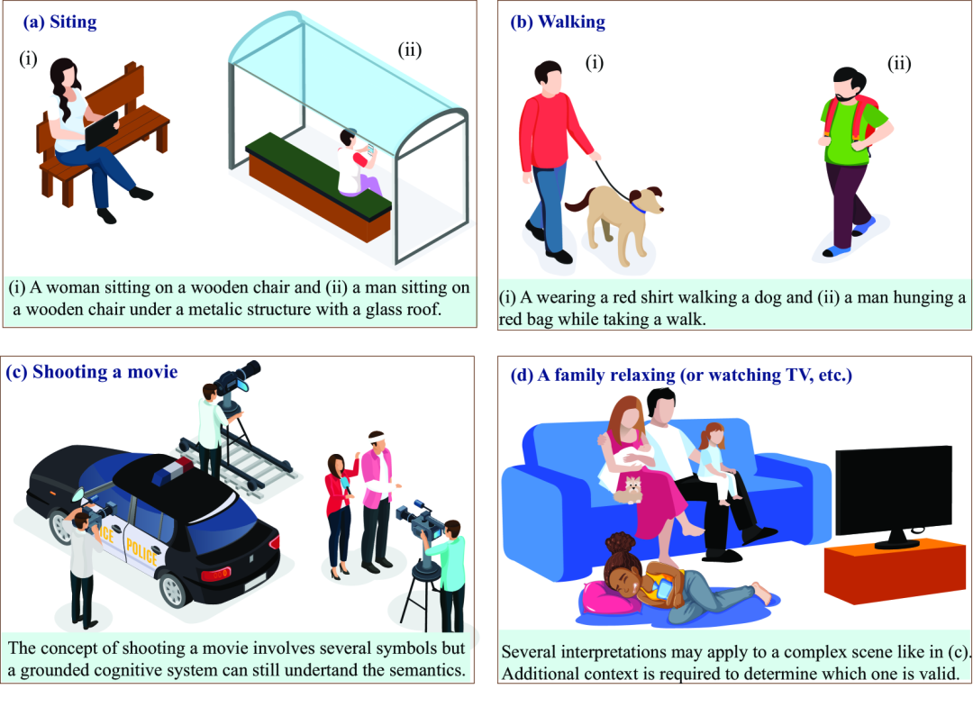 图 13:解释事件和观察结果或执行日常活动,如烹饪和驾驶,需要理解因果关系。例如,在烹饪中(a),需要理解体积、重量、沸腾等概念,以及火等实体的行为。同样,驾驶(b)需要理解速度、动量、惯性、碰撞等概念。