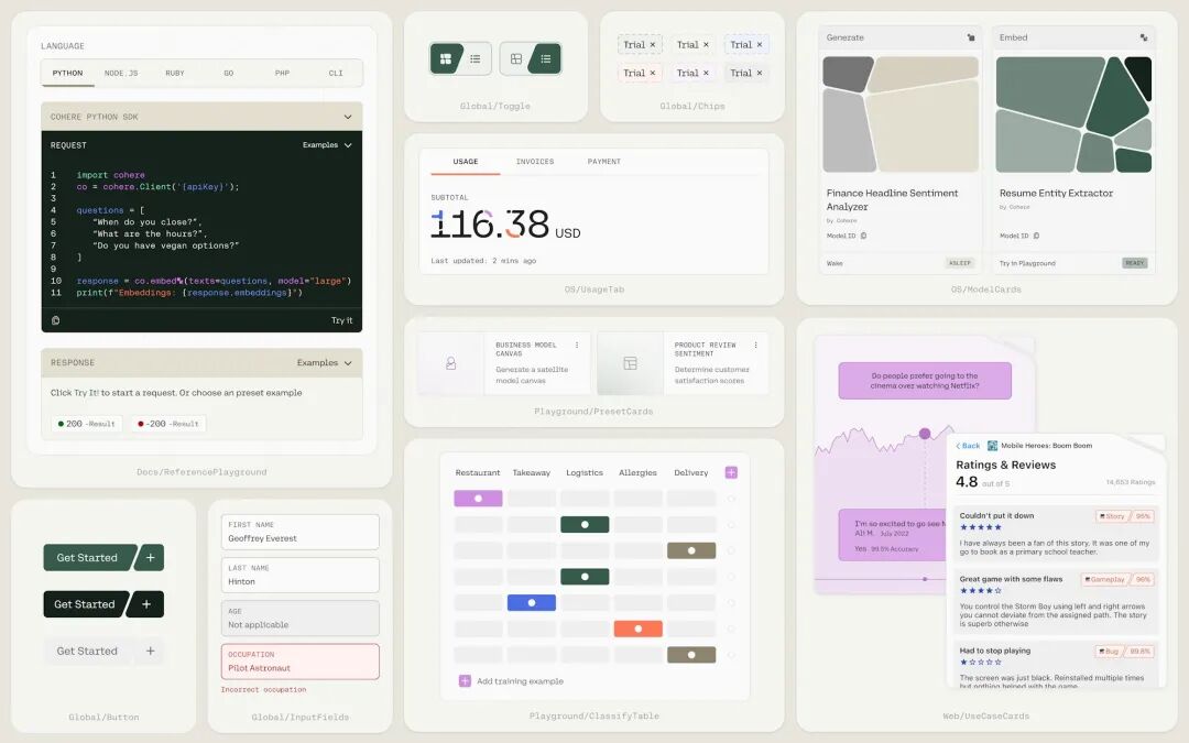 全方位的应用实践品牌系统在Cohere的网站、用户界面和营销材料中得到了全面应用。每个触点都完美展现了"新自然"的理念,创造出协调一致的品牌体验。特别是在网站设计中,设计团队成功地将复杂的技术内容转化为直观、易懂的视觉化展示。 品牌设计的启示 技术团队的审美觉醒 Cohere 的案例向我们证明,顶尖的技术团队同样可以成就卓越的设计美学。这种成功不是偶然,而是源于团队对用户体验的深刻理解和对品牌建设的战略眼光。他们证明了,在追求技术极致的同时,优秀的审美表达同样重要。 设计创新的示范效应 通过这次品牌设计,Cohere 不仅树立了自己的品牌形象,更为整个 AI 行业提供了设计创新的范本。他们展示了如何通过自然元素的引入、工具系统的创新、以及整体视觉语言的构建,来创造既专业又富有美感的技术品牌。 结语:科技美学的新典范 Cohere 的品牌设计成功,印证了顶尖技术团队在追求技术卓越之外,同样可以在审美设计上达到极高水准。这种将科技与美学完美融合的尝试,不仅提升了品牌价值,更为整个AI行业的视觉设计树立了新的标杆。在未来的AI时代,技术与设计的融合将越发重要,而Cohere无疑走在了这条道路的最前端。
