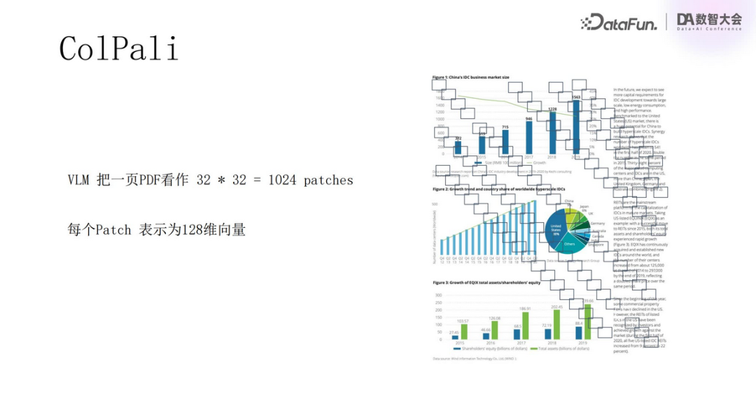 ColPali 就是采用了这种方式。将 PDF 文档切为 1024 个 patches,每个 patch 使用 128 维向量表示,这样一个 PDF 文档就转成了包含 1024 个向量的张量。
