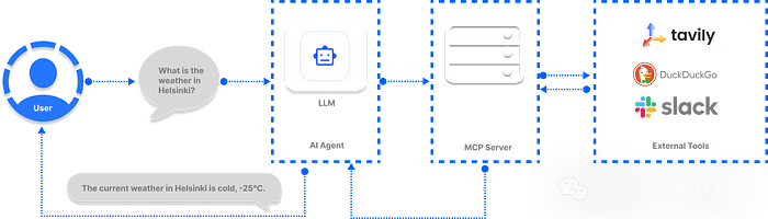在 LLMs 与智能代理的上下文中,MCP 的作用是帮助它们对超出内置知识范围的用户请求做出有意义的回应。举个例子:你让 ChatGPT 向某个 Slack 频道发送消息、检查你的日历是否有空、并与同事安排今天的会议。你可能会对 ChatGPT 的回应感到失望,因为它无法访问这些外部应用程序。而通过实现 MCP,可以让这些 AI 助手输出真正有用的结果