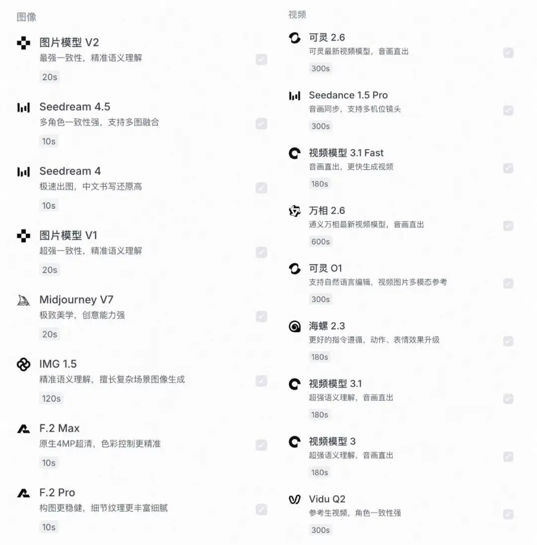 市面上主流的图片和视频模型,这里全都有,都已经在这儿随时待命了。