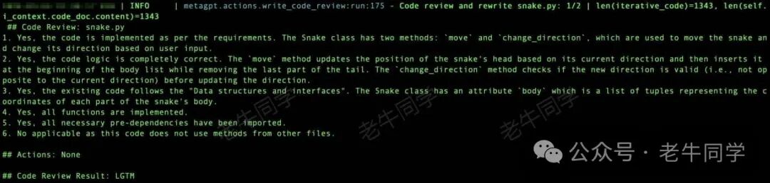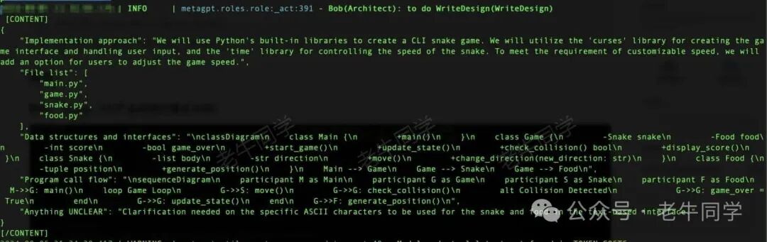 接下来,我们就开始等待了,在MetaGPT实现需求的标准流程中,我们也可以看到它的每一步的输出: