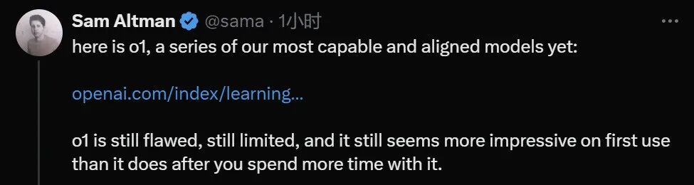 奥特曼表示,虽然 o1 的表现仍然存在缺陷,不过你在第一次使用它的时候仍然会感到震撼。