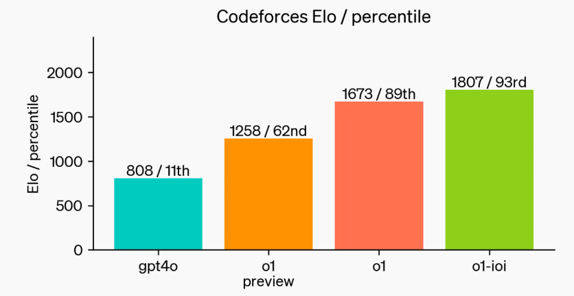 在国际数学奥林匹克(IMO)资格考试中,GPT-4o 仅正确解答了 13% 的问题,而 o1 模型正确解答了 83% 的问题。