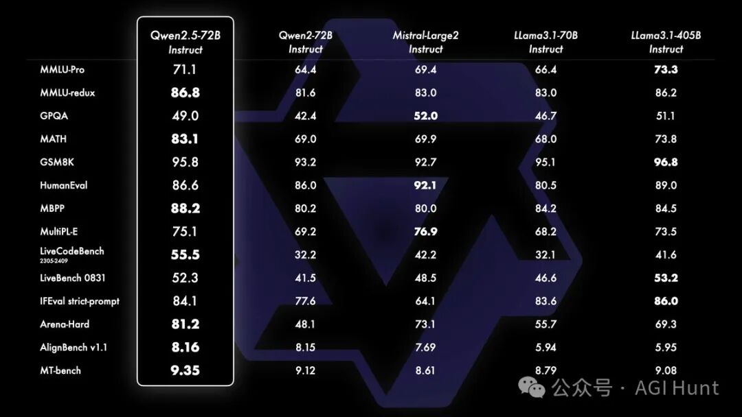 ingFang SC", Cambria, Cochin, Georgia, Times, "Times New Roman", serif;letter-spacing: 0.75px;text-wrap: wrap;background-color: rgb(255, 255, 255);">Qwen又一次放了个大招! ingFang SC", Cambria, Cochin, Georgia, Times, "Times New Roman", serif;font-size: 15px;letter-spacing: 0.75px;text-wrap: wrap;background-color: rgb(255, 255, 255);"> ingFang SC", Cambria, Cochin, Georgia, Times, "Times New Roman", serif;letter-spacing: 0.75px;text-wrap: wrap;background-color: rgb(255, 255, 255);">阿里云发布Qwen2.5模型系列,从3B到72B全面升级,性能直逼专有大模型。ingFang SC", Cambria, Cochin, Georgia, Times, "Times New Roman", serif;letter-spacing: 0.75px;text-wrap: wrap;background-color: rgb(255, 255, 255);">不仅发布了全新的Qwen2.5模型系列,还开源了多个重量级模型。从小小的3B到庞大的72B,Qwen2.5家族成员个个身怀绝技,让人眼花缭乱。ingFang SC", Cambria, Cochin, Georgia, Times, "Times New Roman", serif;letter-spacing: 0.75px;text-wrap: wrap;background-color: rgb(255, 255, 255);">且看这豪华阵容:ingFang SC", Cambria, Cochin, Georgia, Times, "Times New Roman", serif;font-size: 15px;letter-spacing: 0.75px;text-wrap: wrap;background-color: rgb(255, 255, 255);" class="list-paddingleft-1">Qwen2.5通用语言模型:0.5B、1.5B、3B、7B、14B、32B和72BQwen2.5-Coder代码模型:1.5B、7B,32B即将登场Qwen2.5-Math数学模型:1.5B、7B和72BingFang SC", Cambria, Cochin, Georgia, Times, "Times New Roman", serif;letter-spacing: 0.75px;text-wrap: wrap;background-color: rgb(255, 255, 255);">更让人兴奋的是,除了3B和72B版本,其他模型都采用了Apache 2.0开源许可。ingFang SC", Cambria, Cochin, Georgia, Times, "Times New Roman", serif;letter-spacing: 0.75px;text-wrap: wrap;background-color: rgb(255, 255, 255);">这意味着什么?ingFang SC", Cambria, Cochin, Georgia, Times, "Times New Roman", serif;letter-spacing: 0.75px;text-wrap: wrap;background-color: rgb(255, 255, 255);">意味着你可以随心所欲地使用这些模型,不用担心法律问题!ingFang SC", Cambria, Cochin, Georgia, Times, "Times New Roman", serif;letter-spacing: 0.75px;text-wrap: wrap;background-color: rgb(255, 255, 255);">不仅如此,Qwen团队还贴心地提供了各种量化版本,如GPTQ、AWQ和GGUF。总共超过100个模型变体,简直是模型界的"百宝箱"啊!72B旗舰:叫板专有模型的实力派 Qwen2.5-72B-Instruct模型可不是吃素的!在多项基准测试中,它不仅力压大多数开源模型,甚至在某些任务上与专有模型不相上下。这是什么概念?这意味着开源模型正在快速缩小与闭源巨头之间的差距! 中型模型:14B和32B的惊艳表现 别小看这两个"中型"选手!Qwen2.5的14B和32B模型展现出了惊人的实力,在某些任务上甚至超越了前代的72B模型。更令人瞠目的是,它们居然能与GPT4-o-mini一较高下!这不禁让人感叹:AI的进步速度,真是快得让人喘不过气来! 小而强大:3B模型的逆天表现 如果说72B模型的强大在意料之中,那么3B模型的表现绝对是个惊喜。这个小小的模型在MMLU测试中竟然拿下了68分,超越了前代的14B模型!这不仅仅是数字的提升,更是AI民主化的一大步。 想象一下,在不久的将来,你的手机可能就能运行如此强大的AI模型。这不是科幻,而是即将成为现实的未来! 代码和数学:专业领域的深耕 Qwen团队没有忘记专业领域。新推出的Qwen2.5-Coder模型在代码生成和理解方面展现出了惊人的能力,甚至能与更大的代码模型或通用模型一较高下。  而Qwen2.5-Math模型则在数学推理能力上有了质的飞跃。不仅支持链式思考(CoT)和工具集成推理,还同时支持中英双语。如果你正在寻找一个靠谱的数学AI助手,Qwen2.5-Math绝对是你的不二之选! 开源的力量:Qwen2-VL-72B的贡献最后,让我们把目光投向视觉语言模型。Qwen2-VL-72B不仅性能得到了提升,更重要的是,它现在是开源的了!这无疑将为多模态AI的研究和应用带来新的机遇。 Qwen2.5系列的发布,不仅仅是模型性能的提升,更是开源AI社区的一次重大胜利。从通用语言模型到专业领域模型,从大型72B到小巧3B,Qwen2.5系列为不同需求的用户提供了丰富的选择。 这是AI民主化的又一个里程碑。 它让我们看到,高性能AI不再是少数巨头的专利,而是正在成为每个开发者、每个企业都可以掌握的工具。 ? ? ?