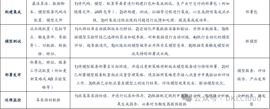 表1:MLOps的生命周期每个阶段的主要输入、主要步骤以及主要输出内容