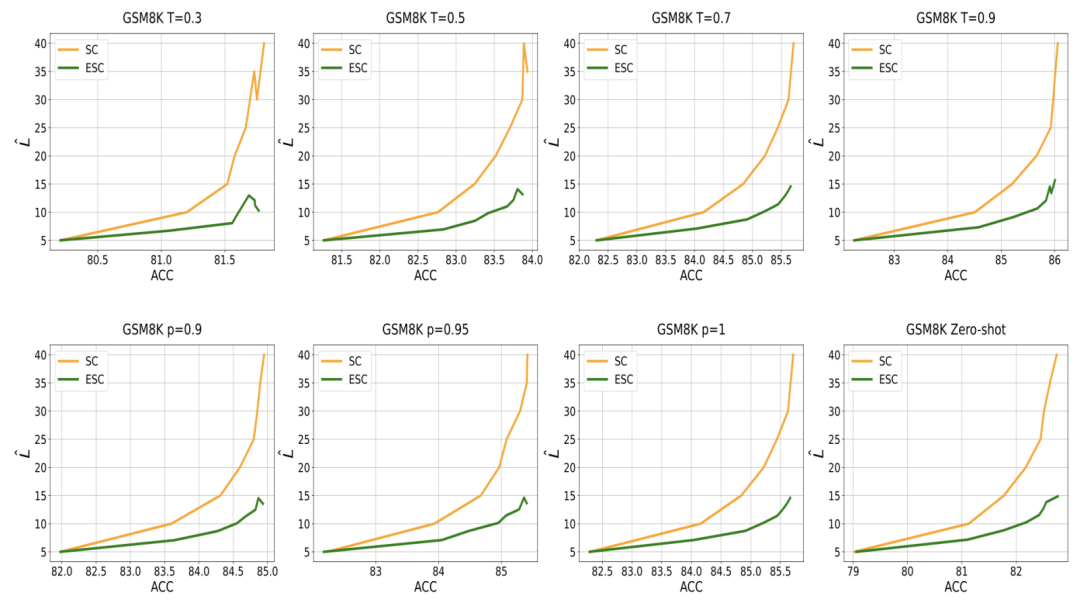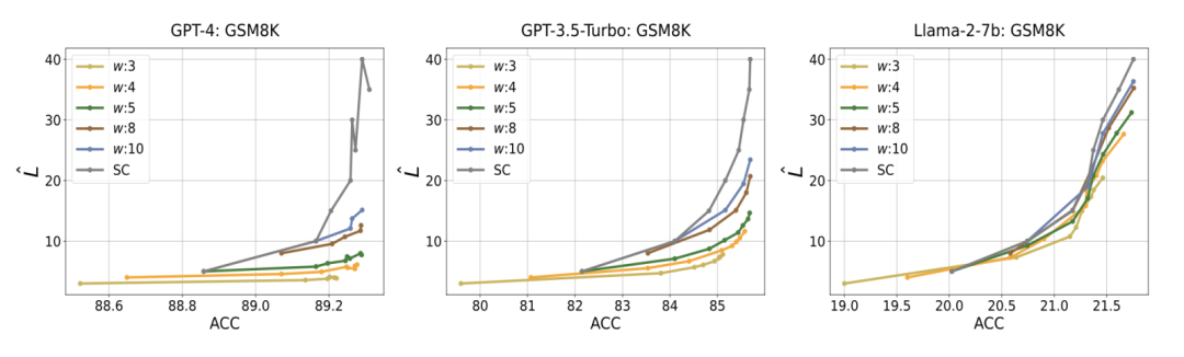 ingFang SC", Cambria, Cochin, Georgia, Times, "Times New Roman", serif;letter-spacing: normal;text-wrap: wrap;background-color: rgb(255, 255, 255);margin-top: 0px;margin-bottom: 16px;">对于答案分布,一个猜想是正确答案的候选分布通常较为集中,而错误答案则相对分散。我们使用熵作为答案分布形状的表示。上图分别展示了窗口内正确和错误投票答案分布的平均熵值,结果表明,具有较高概率的正确答案通常伴随着较低的熵值,因此熵值可以作为一个指标来确定是否继续采样。ingFang SC", Cambria, Cochin, Georgia, Times, "Times New Roman", serif;letter-spacing: normal;text-wrap: wrap;background-color: rgb(255, 255, 255);margin-top: 0px;margin-bottom: 16px;">基于此,我们提出了早停自洽性方法(Early-Stopping Self-Consistency,ESC),即在低熵窗口截断采样过程。为了尽可能地保持性能,我们设置最严格的阈值:熵等于零,即窗口内生成的所有样本都有相同的答案。发生这种情况时停止采样,既能减少采样消耗,同时将性能影响降至最低。早停止(Early-Stopping)是一种被广泛用于训练模型时的技术,以防止过拟合现象发生。在本文中,我们引入早停止策略,应用于减少多次采样过程的成本。与原始的 SC 相同,ESC 是完全无监督且与模型无关,无需任何人工注释或额外训练。我们推导出了在 SC 中有或无早停止方法的结果不一致概率的理论上限,结果表明 ESC 有极大的概率保持性能。此外,我们还提出一个 ESC 动态控制方案:通过选择窗口大小和最大采样次数,动态地为不同任务和模型找到最佳的性能-成本平衡点,以满足实际需求。