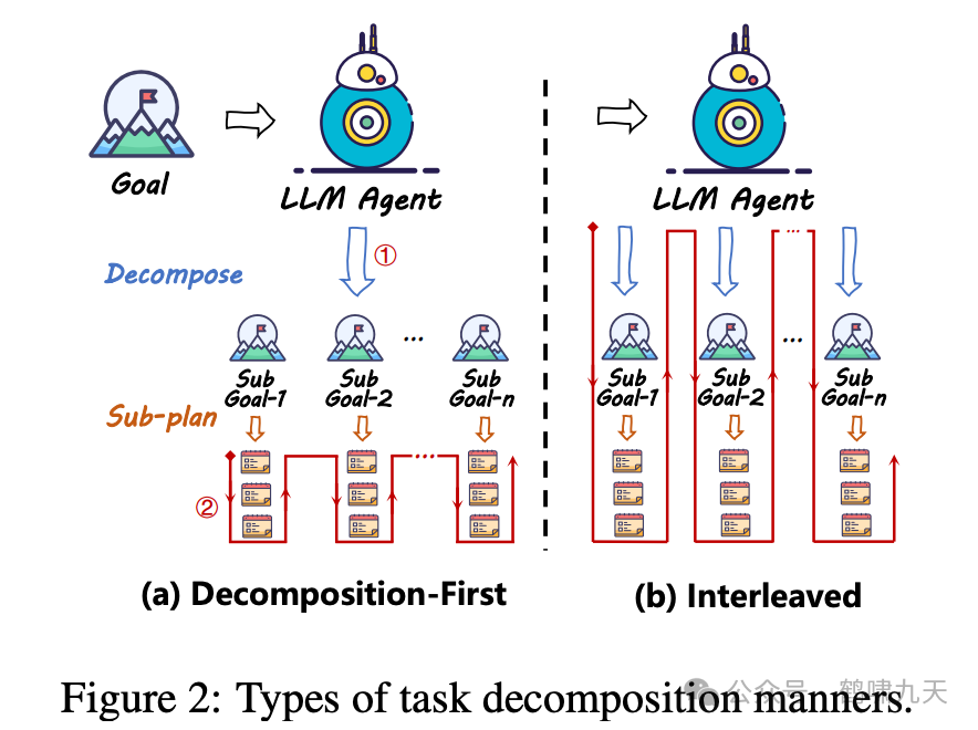 任务分解 (Task Decomposition) 两个关键步骤: “分解”: 将复杂任务分解成若干个子任务; “子计划”: 为每个子任务制定计划。