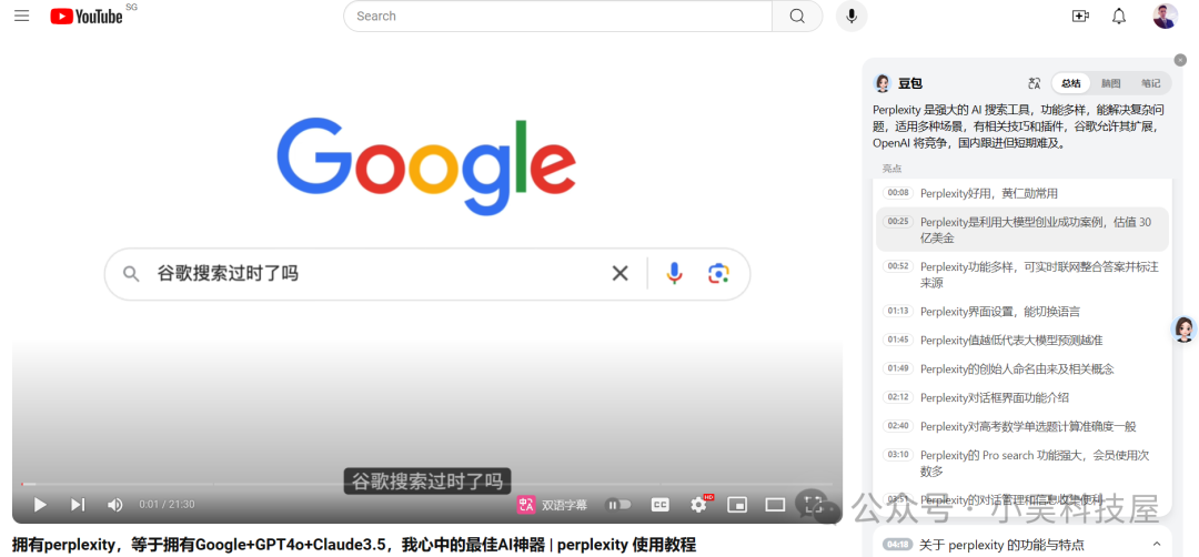 视频总结快速了解一个视频内容讲什么,特别是对于很长的内容来讲时间线都给你列出来,哪里比较感兴趣就可以跳到哪里观看。