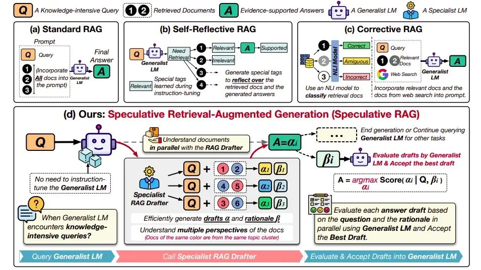 Speculative RAG 就像拥有一个聪明的助手(专用起草者)和一个细致的编辑(通用验证者),确保你的答案既快速又准确!