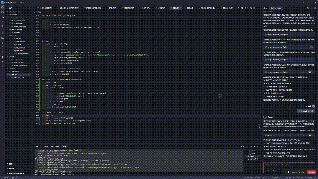 特工们进行了深度测评,两个小时没有写一行代码,所有需求全部“口喷”,实现了一个 toB 的一站式大模型管理平台,包含身份验证登录,仪表盘,用户和模型调用量管理,在线测试模型能力等功能,效果如下。