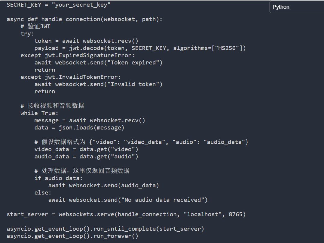 服务端传入视频、音频内容,返回音频,代码实现如下: