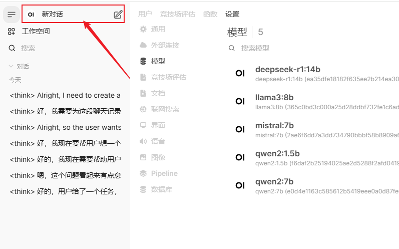 接下来 点击左上角创建新对话 就可以在本地愉快的使用r1了