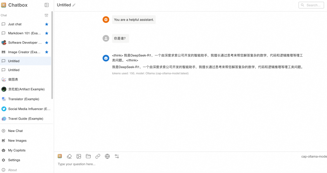 6.第三方平台 API 调用您可以选择在 Chatbox 等其他第三方平台中验证和引用模型调用,以下以 chatbox 为例: