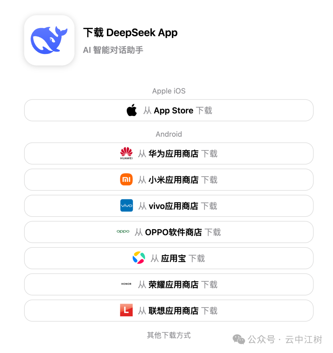 2.DeepSeek APP- 描述:DeepSeek 移动应用程序,已上架各大手机应用商店。