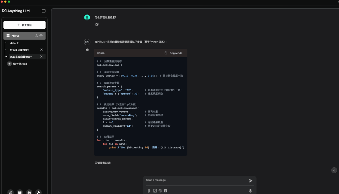 ingFang SC", system-ui, -apple-system, "system-ui", "Helvetica Neue", "Hiragino Sans GB", "Microsoft YaHei UI", "Microsoft YaHei", Arial, sans-serif;font-size: 16px;letter-spacing: 0.578px;background-color: rgb(255, 255, 255);visibility: visible;line-height: 1.5em;">ingFang SC", system-ui, -apple-system, "system-ui", "Helvetica Neue", "Hiragino Sans GB", "Microsoft YaHei UI", "Microsoft YaHei", Arial, sans-serif;letter-spacing: 0.544px;background-color: rgb(255, 255, 255);text-align: center;line-height: 1.5em;visibility: visible;"> “老板说,这个项目得上Deepseek,还得再做个知识库...” 还有哪个开发者,最近没听到这样的怨? Deepseek爆火,推理端的智能提速,算力成本急剧下降,让不少原本不想用大模型,用不起大模型的企业,一夕之间全部拥抱AI,开启了降本增效。在这个过程中,对于大部分拥有优质私有数据,敏感数据的企业来说,如果不想数据泄露,那么部署本地知识库,就成了拥抱大模型的必经之路。 可是当你真正开始调研的时候,就会发现这事儿没那么简单: 想用开源的蒸馏版模型?效果差强人意,连基本的问答准确度都难以保证。 比如,前不久,我们推出了基于Deepseek 7b+Milvus的本地部署教程,就有不少开发者反应,7B版本,即使加上了向量数据库,也依然效果差强人意。 可是上满血版的大模型?满血的R1,参数有671B,即使已经是FP16精度,需要的显存也高达1342GB,换算成80G的A100,也需要足足17张。而个人电脑,即使采用顶配的24GB的4090,需要的数量也足足高达56张(MoE+量化会降低实际显存需求)…… 很显然,别说个人,就是一些中小企业,也没这么多显卡。 那就用开源方案搭建?光是配置环境就够喝一壶的:向量库选型、模型部署、前端界面...每一步都像是在考验你的耐心。 难道就没有一个简单可行的方案吗? 被老板抓着加班部署了一个月后,相信我,Deepseek+Milvus+AnythingLLM,绝对是你部署本地知识库的最优解! 这个方案不仅解决了性能问题,更重要的是,它真的做到了"零门槛",只需要30分钟,就能搭建一个具备企业级性能的私有知识库。而且,整个过程真的像搭积木一样简单,小白也能快速上手。 01选型思路首先我们来看一下,这次选型,为什么采用Deepseek+Milvus+AnythingLLM这个组合,它主要解决了目前RAG落地的三大痛点: 1.1 模型性能问题用过ollama提供的蒸馏版Deepseek的朋友,应该都有同感,虽然也是Deepseek,但效果实在不怎么聪明。总结来说,就是7B太智障,671B用不起。 所以,在这里,我们推荐使用硅基流动以及一些云服务企业的API服务,通过API调用的方式,我们可以用很低的成本获得满血版Deepseek的算力支持。而且,最近一段时间,新注册用户还有免费的额度尝鲜。 1.2 部署难度问题市面上开源的RAG方案不少,但要么需要复杂的环境配置,要么需要大量的运维工作。而AnythingLLM则提供完整的UI界面,天然的支持向量数据库Milvus以及各种类型的大模型接口,降低了入门用户的使用门槛。 而Milvus在召回效率、支持的数量规模等方面,也是业内毋庸置疑的第一梯队,与此同时,Milvus也是目前github上向量数据库方向,star数量最多的开源产品,属于大部分AI开发者的入门基础课程。 1.3 扩展性问题这个组合最大的亮点在于它的灵活性。可以轻松切换不同的大语言模型,Milvus支持亿级数据的高性能检索,AnythingLLM的插件机制让功能扩展变得简单。 总的来说,这个组合方案既保证了效果,又降低了使用门槛,还具备良好的扩展性。对于想要快速搭建私有知识库的个人来说,是一个非常理想的选择。