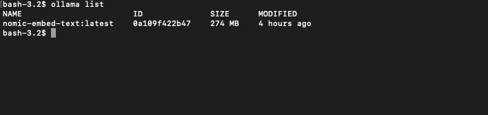 (2)ollama下载向量模型官网:https://ollama.com/ 2.1 下载查看向量模型bash-3.2$ollamapullnomic-embed-text