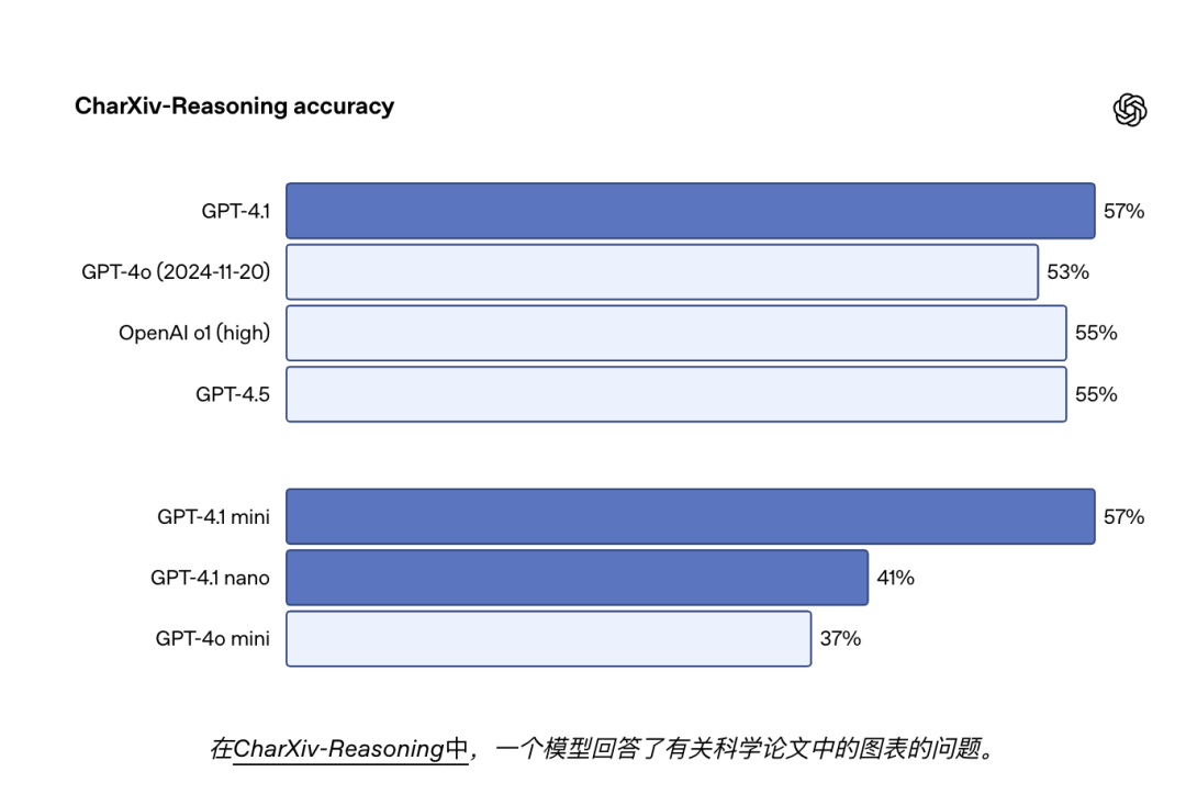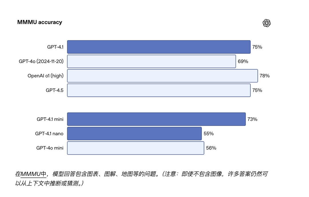 GPT-4.1 系列在图像理解方面非常强大,尤其是 GPT-4.1 mini 代表了重大的飞跃,在图像基准测试中经常击败 GPT-4o。