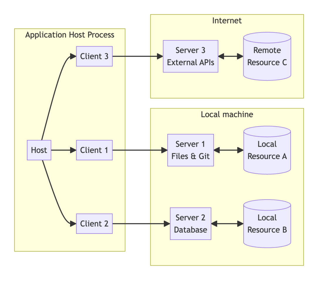 用 MCP 协议的"主机-客户端-服务器"架构来理解: