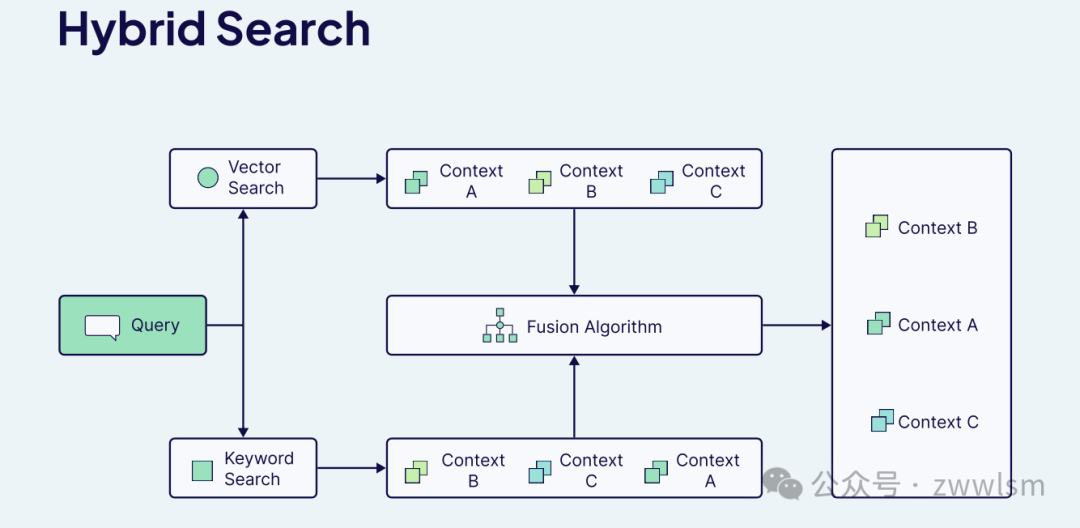 混合检索(Hybrid Search)同时结合了向量语义检索传统关键词检索的优势,目的是利用二者互补的特性来提升RAG系统检索结果的相关性和准确率 。在混合检索模式下,系统既考虑文本的语义相似度,又考虑精确的关键词匹配,从而兼顾上下文理解和关键字命中。