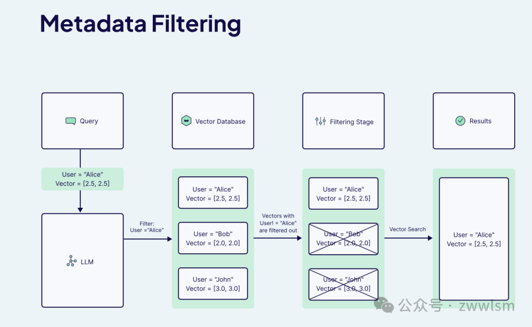 元数据(Metadata)是指附加在文档或片段上的结构化信息,例如时间戳、作者、类别、数据来源、语言、文件类型等 。充分利用元数据可以帮助我们在检索时精确筛选结果,从而提升相关性 。当使用向量语义检索时,有时会出现语义上相似但在上下文上并不相关的结果,而引入元数据过滤可以将这些结果剔除 。例如,我们可以在查询时指定仅检索特定年份之后的文件,或者限定只从某个数据源获取答案,这样即使有一些文本在语义上匹配但因不符合时间或来源要求,也会被过滤掉。