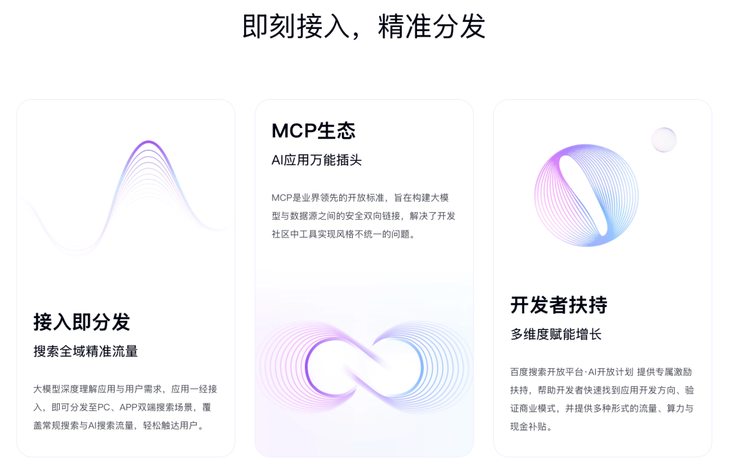 AI开放计划对应的平台名为百度搜索开放平台,提供了应用和 MCP 两种接入方式。